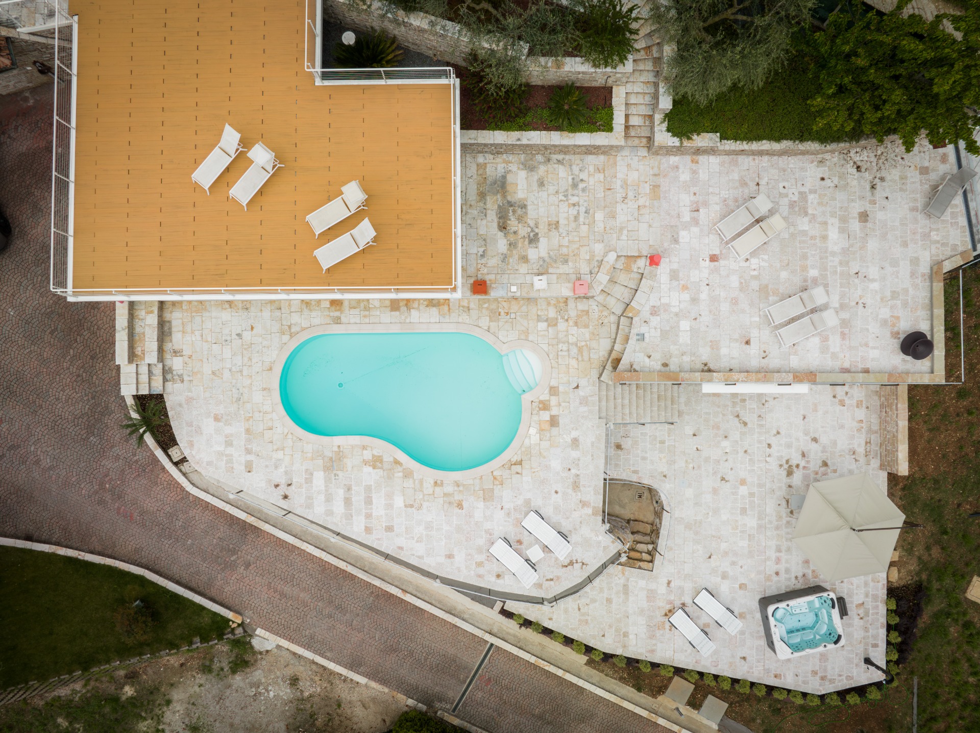 L'idromassaggio, con i suoi getti massaggianti e l'acqua calda, scioglie le tensioni, offrendo un comfort immediato, mentre la piscina, con l'acqua a temperatura ambiente, rinfresca in modo sereno.